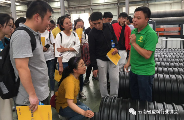 在云南省塑協(xié)的協(xié)調(diào)安排下,6月29日下午,西南林業(yè)大學(xué)高分子材料與工程專業(yè)大二師生一行47人到協(xié)會(huì)會(huì)員單位云南益華管道科技有限公司的生產(chǎn)車間參觀學(xué)習(xí),協(xié)會(huì)工作人員陪同走訪,受到了益華管道賀世家廠長(zhǎng)的熱情接待。